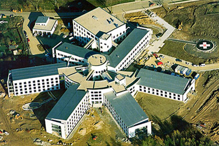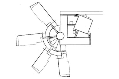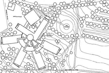 Die Auflösung des Gesamtkomplexes in mehrere Einzelbaukörper ermöglicht eine fast ausschließliche natürliche Belichtung und Belüftung. Die Stellung der Baukörper zueinander resultiert aus ihrer Funktion.